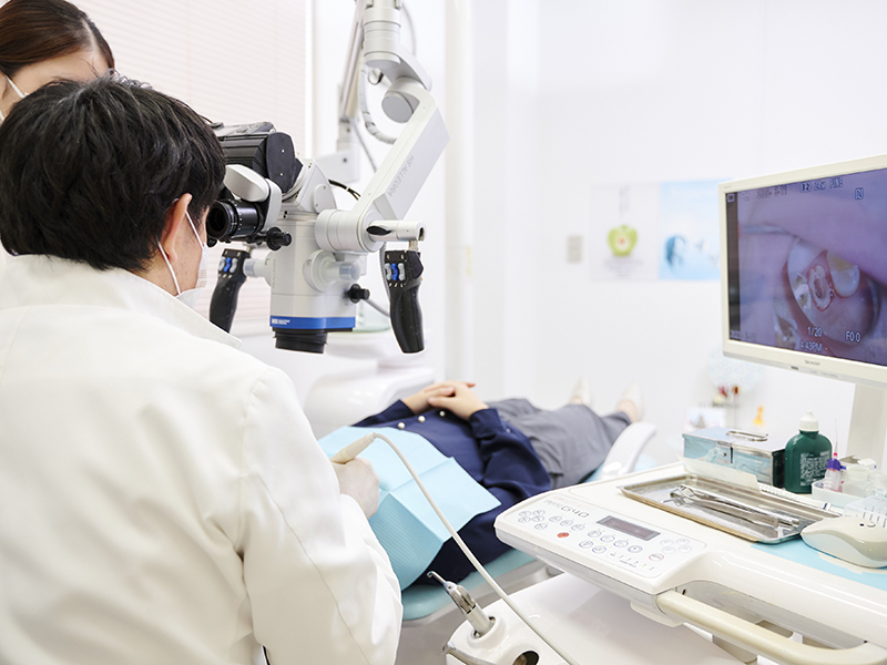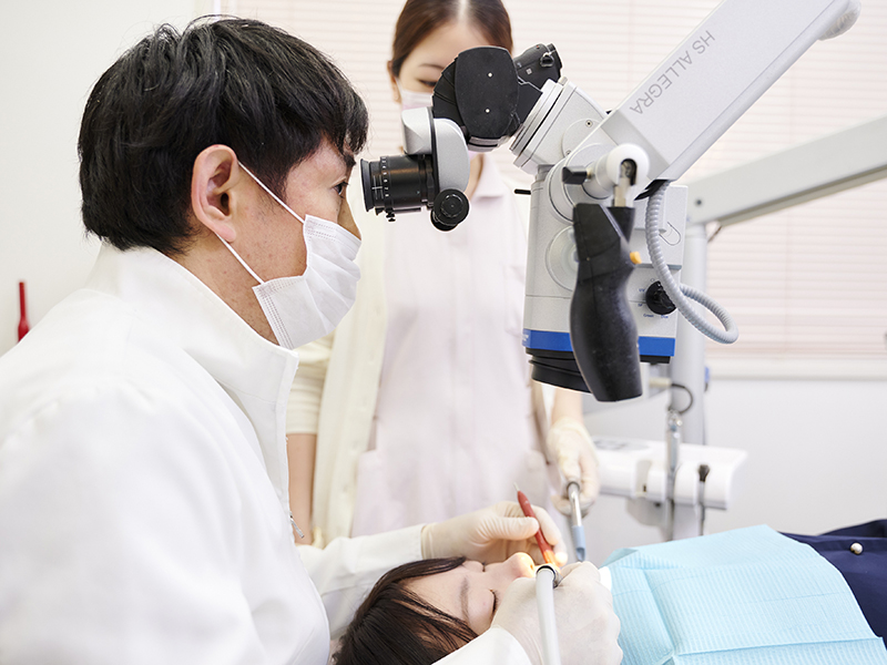 根管は細いうえに曲がりくねっていることもあるので、肉眼で内部を見ることはできません。そのため、当院ではマイクロスコープを使用して精度が高い「精密根管治療」を行っています。