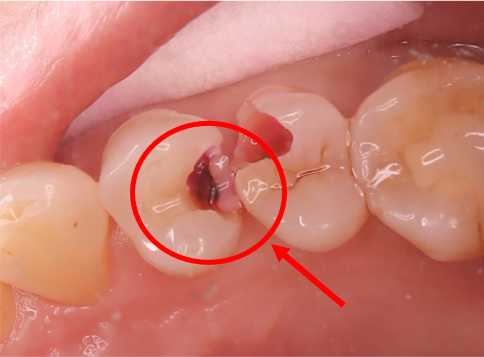 むし歯が後期まで進行している可能性があります。 当院ではなるべく歯を残すことができるようマイクロスコープを使った根管治療を行っています。