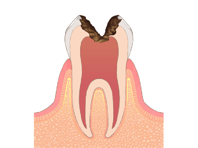 この様な場合は、むし歯が中期まで進行している可能性があります。