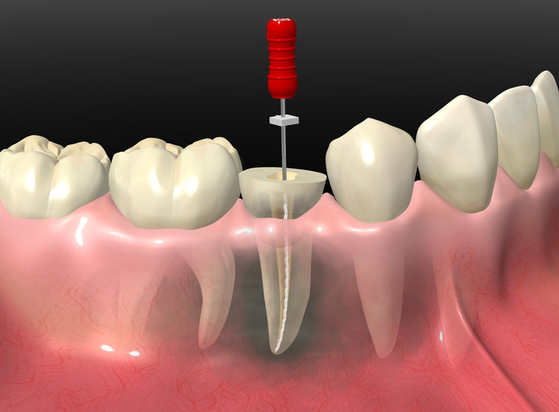 根管とは歯の神経が入っている非常に細い管です。むし歯で神経を除去した後は根管内に侵入した細菌を除去する必要があり、これを根管治療と呼びます。根管治療がしっかりできていないと根管内で菌が繁殖して再治療することになりますから、非常に重要な治療です。