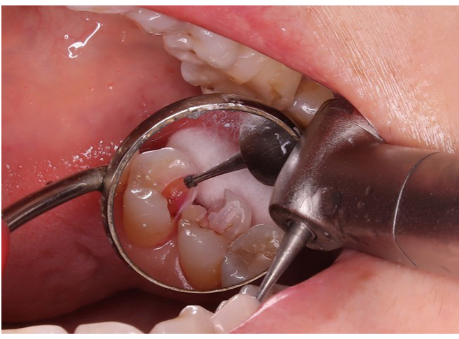 指の先ほどの歯の中の、むし歯の部分だけを除去しなければなりません。