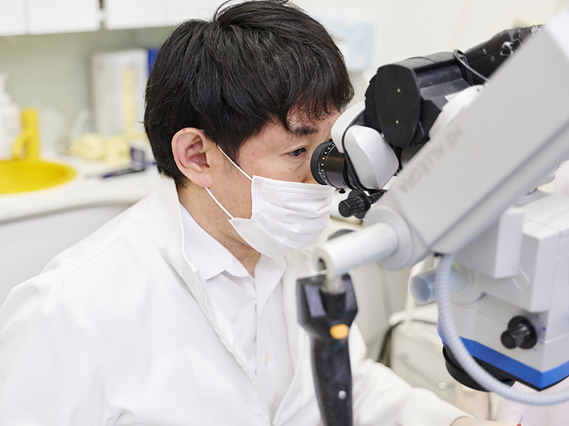 マイクロスコープを用いることで、視野は目視の20倍に拡大し、細部も鮮明に確認できます。ダイレクトボンディングでは、ハイブリッドレジンを直接歯に盛り足していくという処置を行うため、精度の高い仕上がりを提供するためには、繊細かつ丁寧な作業が必要です。高い接着技術とマイクロスコープによる拡大視野で、患者様に満足していただける治療を目指しています。
