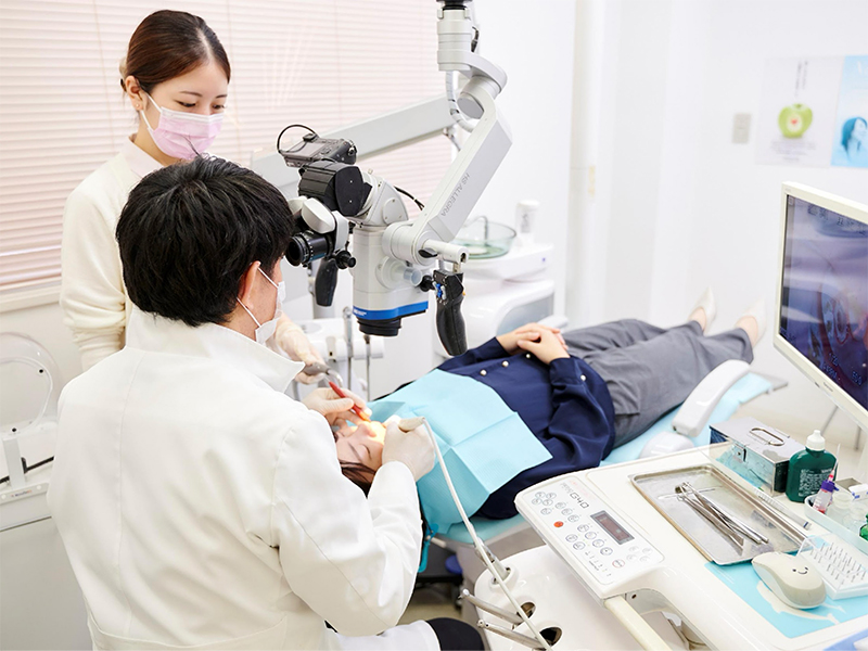 根管は非常に細いうえに形状が複雑なので、内部を清掃する根管治療は難易度が高い治療であることが知られています。当院はマイクロスコープを導入していますし、その性能を発揮できるように技術を習得していますので、「精密根管治療」を得意としています。